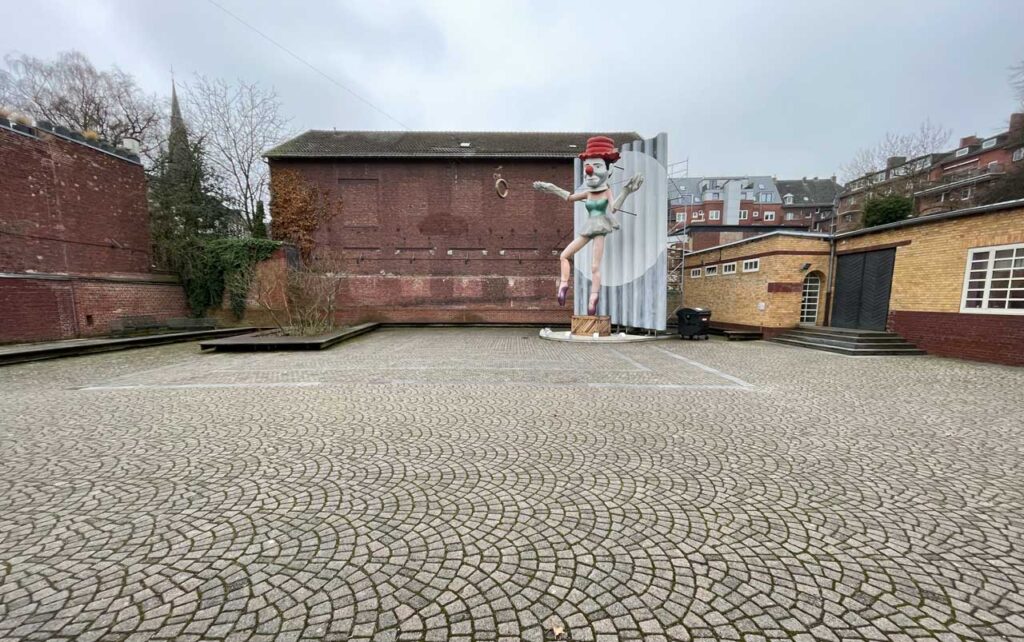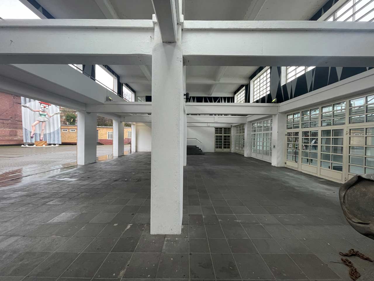 Der Bereich neben dem Eingang. Auch hier muss noch geklärt werden, ob er zur Verfügung steht. Pop-up-Café, Tanz, Ausstellung, Performance.